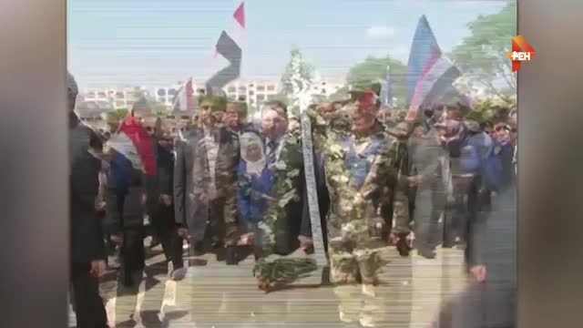 В честь празднования главный муфтий САР, губернатор Алеппо, а также военное руководство и представители правящей партии Баас возложили цветы к Вечному огню.