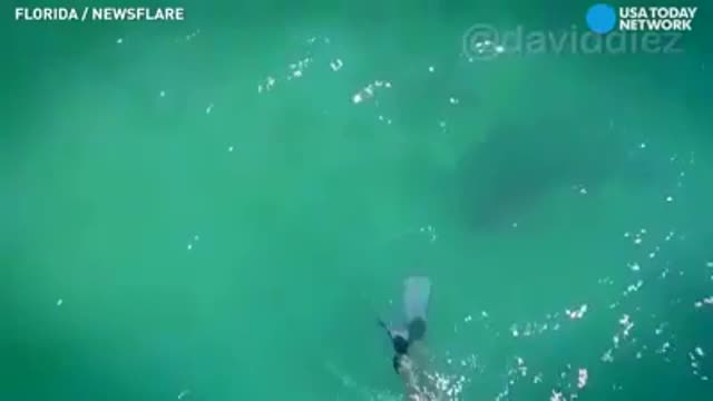 Попытку нападения акулы на ныряльщицу сняли с высоты птичьего полета
