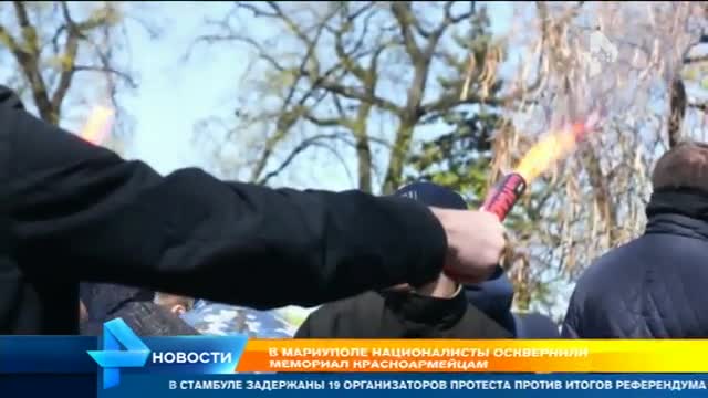 В Мариуполе радикалы осквернили мемориал воинам 130-й Таганрогской дивизии. Вандалы исписали монумент черной и красной красками, а также нарисовали фашистские символы и эмблемы карательного батальона "Азов" – того самого, бойцы которого неоднократно обвинялись в убийствах, похищениях и пытках жителей Донбасса.