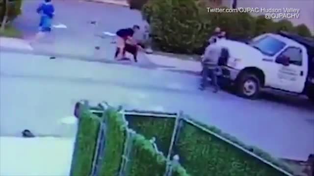 Камера видеонаблюдения на одном из домов в округе Рокленд, штат Нью-Йорк, сняла нападение питбуля на трехлетнего мальчика. Видео нападения было опубликовано в Twitter.
