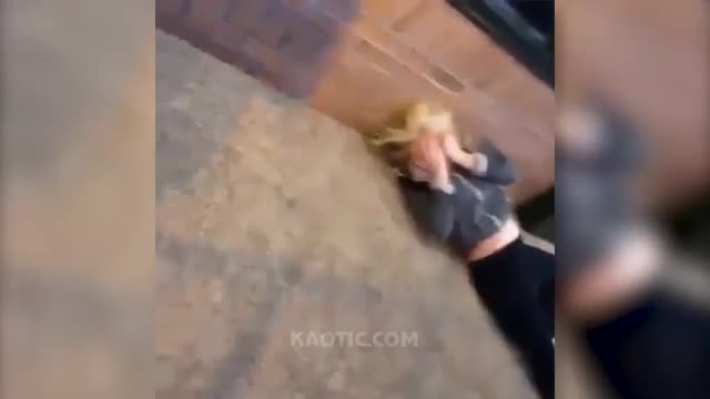 Она из соперниц, судя по кадрам, оказалась сильнее своей оппонентки — она наносит ей удар за ударом, один сильнее другого. Апогеем схватки блондинок становится мощный удар с ноги в голову, после этого одна из девушек остается лежать на тротуаре, прикрывая лицо руками.