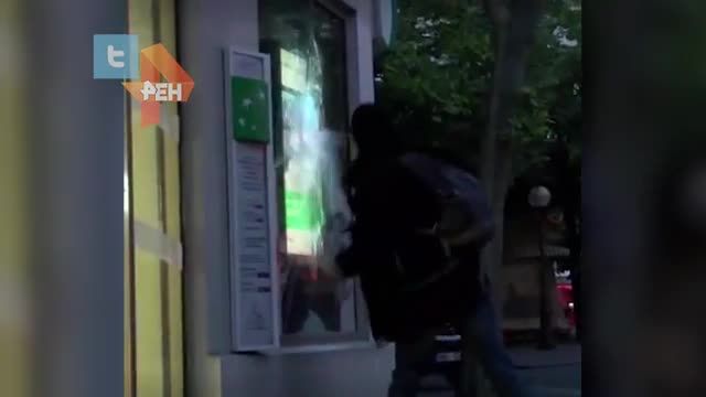 Так, на кадрах можно увидеть, один из мужчин разбивает витрину ногой, после чего убегает. Также на одном из роликов запечатлена, в частности, горящая коробка, оставленная у автобуса.