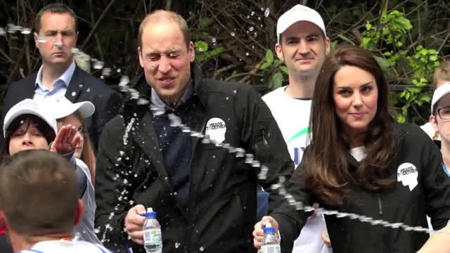В момент, когда участники останавливались, чтобы поприветствовать членов королевской семьи и сделать с ними фото, кто-то из пробегавших мимо спортсменов плеснул Уильяму в лицо водой из бутылки. Инцидент развеселил супругу и брата наследника британского престола.