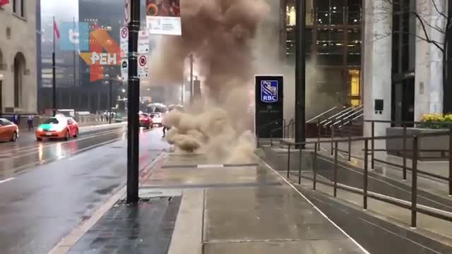 На кадрах из канализации поднимается густой дым коричневого цвета. Инцидент произошел недалеко от офиса канадского банка RBC. Отмечается, что прохожие слышали несколько мощных хлопков.