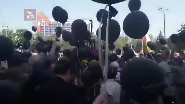 "В этом доме не шумят, здесь, укрывшись светом выше, мученики спят, лучше вы свечу зажгите. Здесь витают души злом замученных людей. Выходите тихо-тихо", - читали они. В руках у собравшихся были черные шары, которые были выпущены в небо со стаей белых голубей.