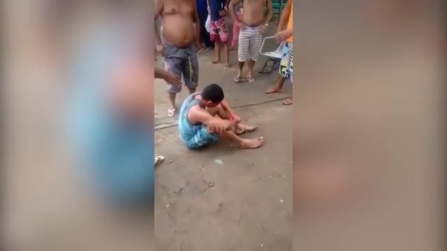 В Бразилии, в Манаусе, очевидец запечатлел на видео жестокое наказание, которое вынес уличный воришка.