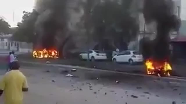 Появилось первое видео с места взрыва у итальянского кафе в столице Сомали Могадишо. Ранее стало известно, что около десяти человек ранены и четверо погибли.