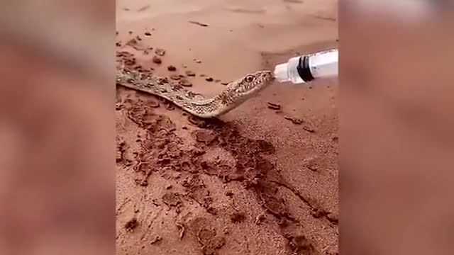 Как информирует газета Daily Mail, инцидент был заснят в пустыне в Саудовской Аравии. На ролике можно увидеть, как пресмыкающемуся подносят емкость с водой, и змея жадно пьет.