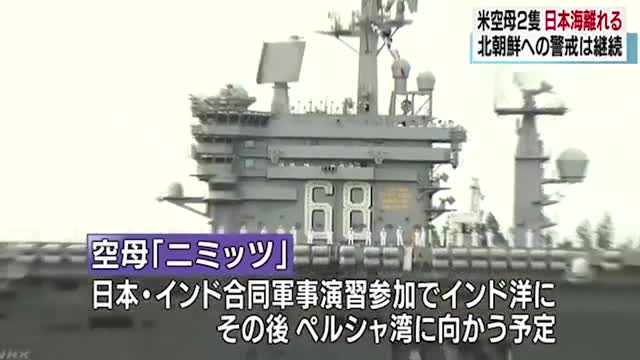 Ранее сообщалось, что из Японского моря ушли два американских авианосца Carl Vinson и Ronald Reagan. Военные корабли провели трехдневные учения близ Корейского полуострова после трех пусков баллистических ракет Северной Кореей за три недели.