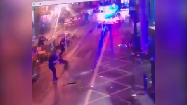 В Сети появилось предполагаемое видео ликвидации лондонских террористов. На кадрах записи видно, как сотрудники полиции выбегают из авто и открывают огонь по боевикам.