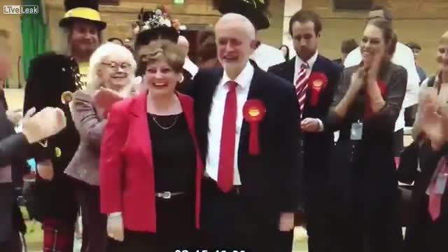 Ранее в Сети появилось видео, как во время празднования результатов голосования глава лейбористов Джереми Корбин случайно потрогал секретаря Теневого кабинета Эмили Торнберри за грудь.