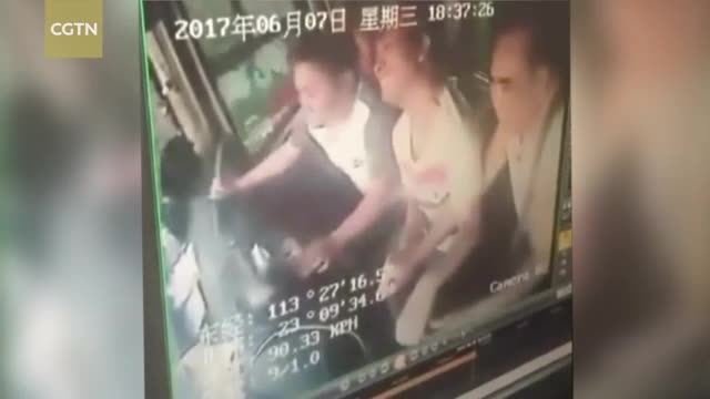 Видео: житель Китая попытался сбросить автобус с обрыва, вырвав руль у водителя