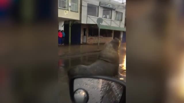 Трогательное видео: огромный морской лев остановил движение на улице в Чили