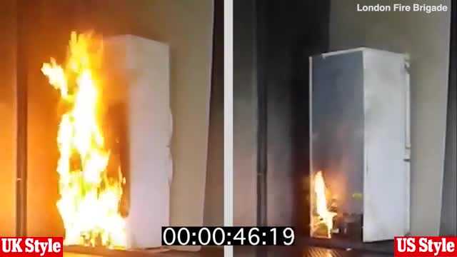 На кадрах видно, как буквально за минуту холодильник полностью сгорел. После этого пожар может перекинуться на мебель и распространиться с огромной скоростью.