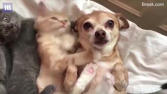 Найди лишнего: Видео с котятами, облепившими щенка, растрогало пользователей Сети