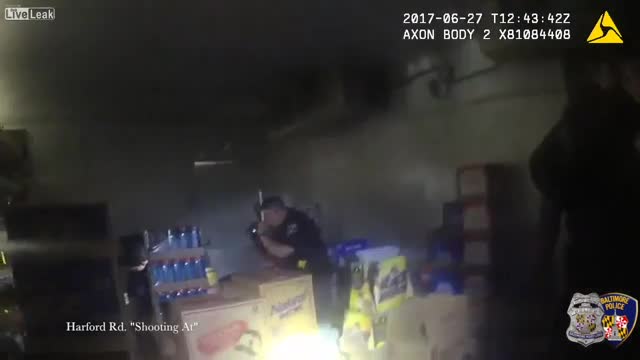 На втором ролике действие разворачивается уже в магазине спиртных напитков. Офицер производит один выстрел, но снова не попадает по своей цели.