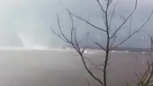 Водяной смерч: Очевидцы засняли гигантский вихрь над Волгой
