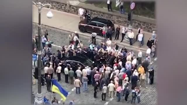 Автомобиль въехал в толпу митингующих у здания правительства в центре Киева. У кабмина собрался стихийный митинг ветеранов МВД.