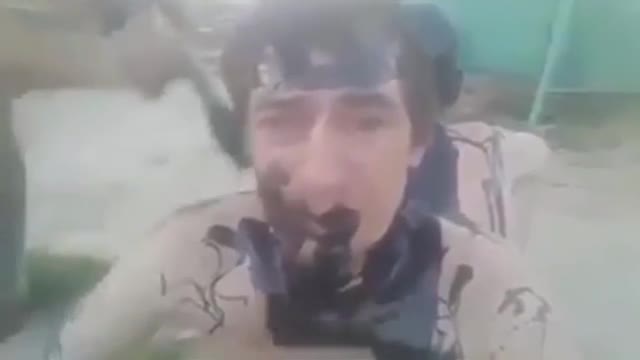 Предполагаемых злоумышленников раздели догола. Дальше мужчин усадили спина к спине и облили их лица густой чёрной краской. Химикат попадает в глаза, но они даже не пытаются сопротивляться.