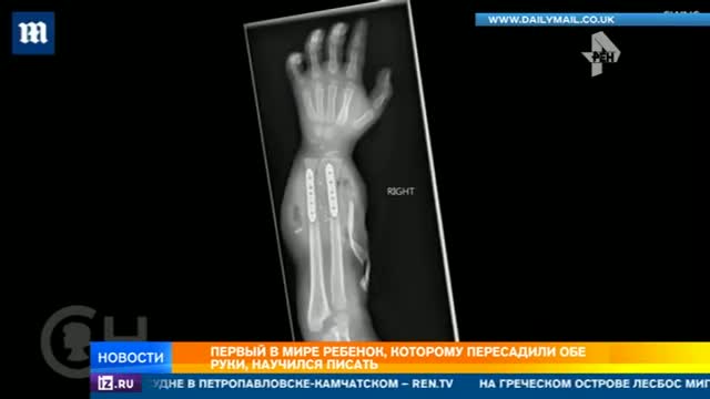Первый в мире ребенок, которому пересадили обе руки, научился писать
