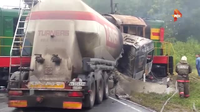 Видео с места с столкновения тепловоза и грузовика под Тамбовом