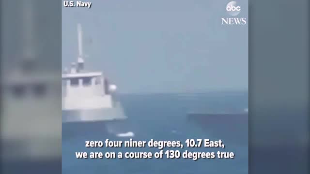 Телеканал ABC News публикует видео двух предупредительных выстрелов, которые произвел корабль ВМС США в сторону судна Ирана в Персидском заливе. Ранее Корпус стражей исламской революции (КСИР), который является элитным подразделением ВС Ирана, назвал действия американских военных моряков "провокационными и непрофессиональными".