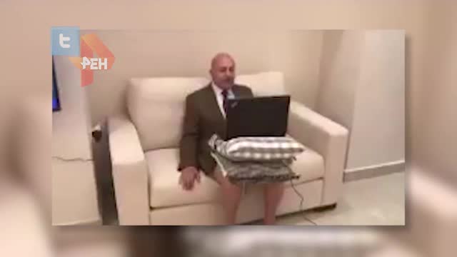 Эксперт комментировал ситуацию через веб-камеру на ноутбуке, при этом компьютер стоял у него на коленях на двух подушках. Однако его родственник снял на видео, что серьезный специалист дает комментарий, будучи одетым только наполовину.