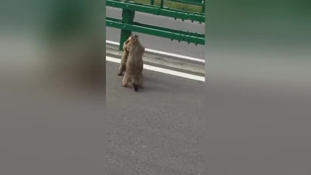 Видео: два бобра попытались вальсировать на дороге в Китае