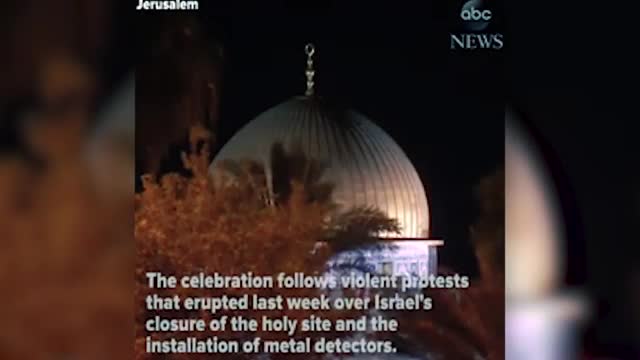 Палестинские мусульмане празднуют снятие дополнительных устройств обеспечения безопасности, которые Израиль установил на Храмовой горе, передает ABC News. Ранее стало известно, что израильские власти демонтировали заграждения и подвесной мост.