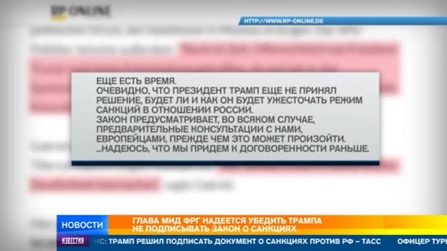"Очевидно, что президент Трамп еще не принял решение, ужесточать ли режим санкций в отношении России и каким образом. Закон предусматривает, во всяком случае, предварительные консультации с нами, европейцами, прежде чем это может произойти. Надеюсь, что мы придем к договоренности раньше", — цитирует министра его пресс-служба.