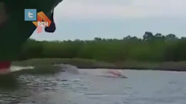 Редчайшие розовые дельфины совершенно случайно попали в объектив любительской камеры. Животное заметили вовремя в судоходном канале в американском штате Луизиана.