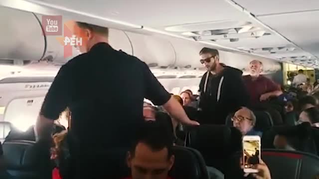 Дебошир поднялся со своего места и начал дергать ручку, чтобы выйти из лайнера.