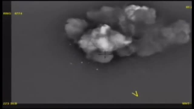 Министерство обороны Российской Федерации публикует видео,на котором запечатлены авиаудары по объектам группировки "Исламское государство" (запрещена в Российской Федерации).