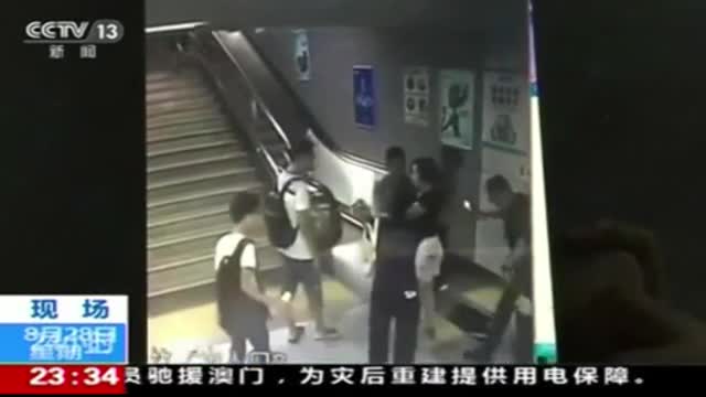 Женщина провалилась под пол перед эскалатором в метро в Китае. Ужасающий момент попал на камеры наблюдения.
