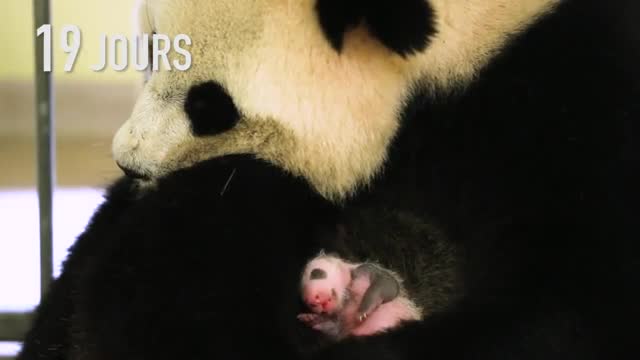На трогательных кадрах можно увидеть малыша с периода его жизни в инкубаторе, когда он еще был похож на гигантского розового червяка. Пользователи могут понаблюдать за тем, как за детенышем ухаживала мама и как он рос, постепенно обретая черно-белую шерсть.