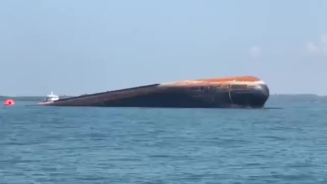 Опубликовано видео столкновения индонезийского нефтяного танкера с землесосным снарядом в водах Сингапура.