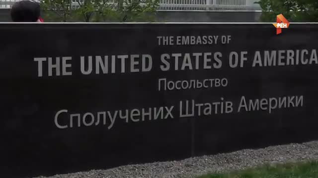 Активистка Femen выступила против политики американского президента Дональда Трампа, раздевшись перед зданием посольства Соединенных Штатов Америки в украинской столице.