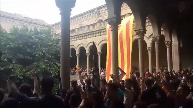 Более 3 тысяч испанских студентов в полдень 22 сентября заняли Университетскую площадь, а позднее и историческое здание Университета Барселоны, выражая свою поддержку проведению референдума о независимости Каталонии от Королевства Испания. Об этом сообщает испанская Orain.Navarra.