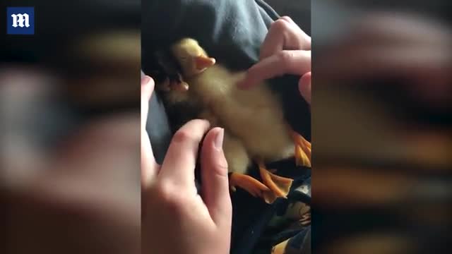 В коротком клипе показаны спящие утята – один черного--желтого окраса, другой – только желтого. Подросток аккуратно поглаживает уточек пальцами, а когда на мгновение перестает это делать, желтый утенок вопросительно приоткрывает глаза.