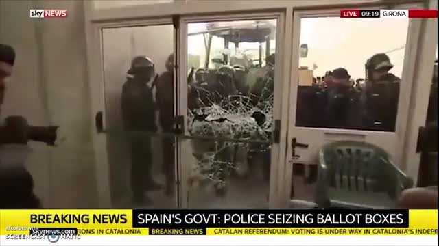 Видео: полиция кувалдой разбивает стекла на участке, где должен голосовать глава Каталонии