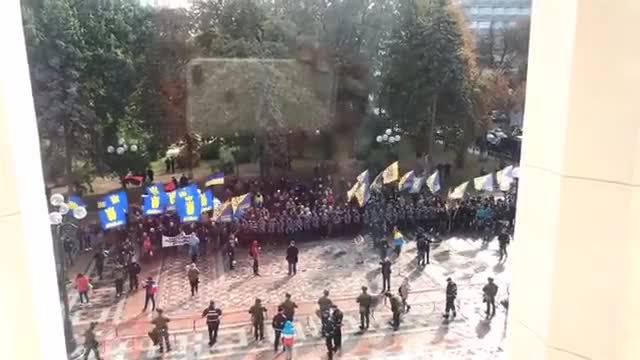 Видео: протестующие у Рады националисты зажгли дымовые шашки