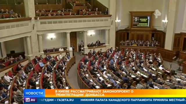 В Киеве у здания Верховной Рады в эти минуты - более сотни националистов. Прямо сейчас депутаты рассматривают скандальный законопроект о реинтеграции Донбасса.