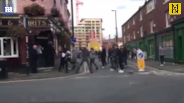 Видео: футбольные фанаты избили охранников паба в Манчестере палками и камнями