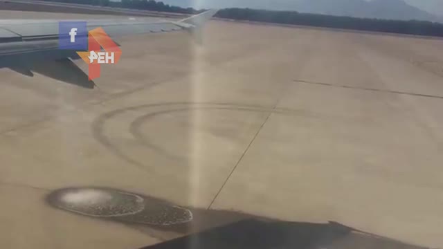 На кадрах видео самолет двигается по взлетно-посадочной полосе. Видно, что из Airbus A321 украинской авиакомпании Windrose вытекает топливо.