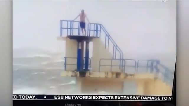 Видео: Двое бесстрашных мужчин искупались во время бушующего урагана "Офелия"