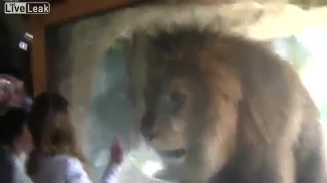 Животное это переполошило, и он стал царапать стеклянную стену и скалиться.