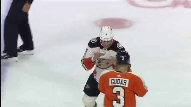 Драка произошла между защитником "Анахайма" Кевином Биексом и его соперником Радко Гудасом.