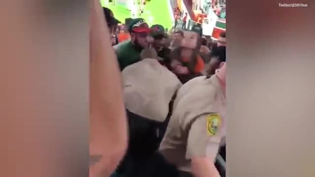 Видео: в США полицейский "вырубил" буйную футбольную фанатку ударом в лицо