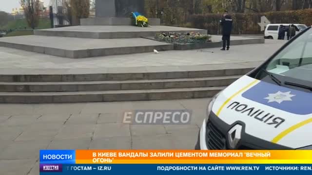 Оппозиция обвинила киевские власти в уничтожении Вечного огня. Монумент залили цементом.