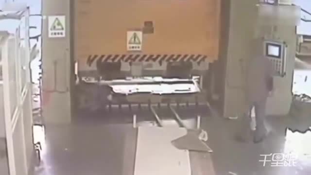 Видео: в Китае рабочий убил коллегу гидравлическим прессом